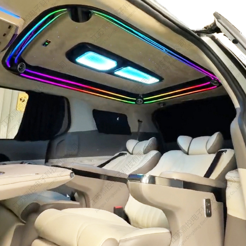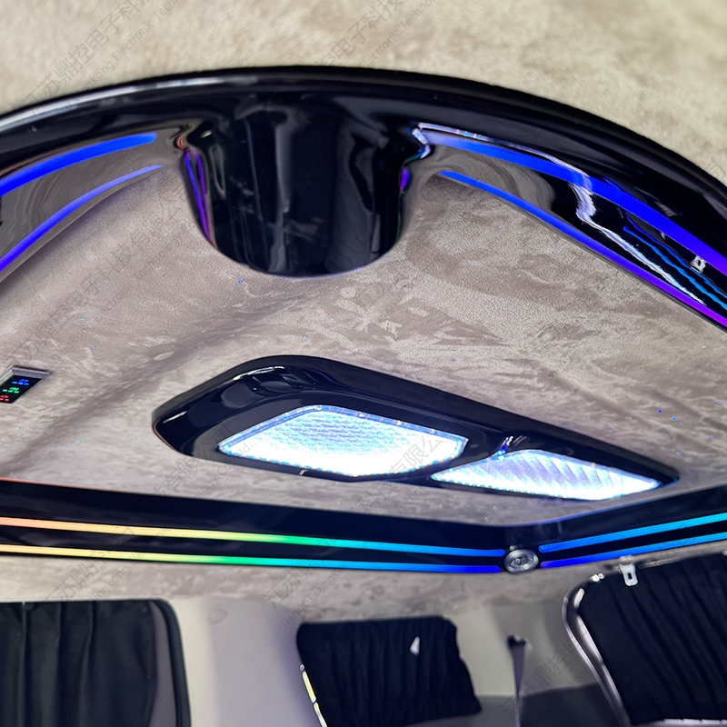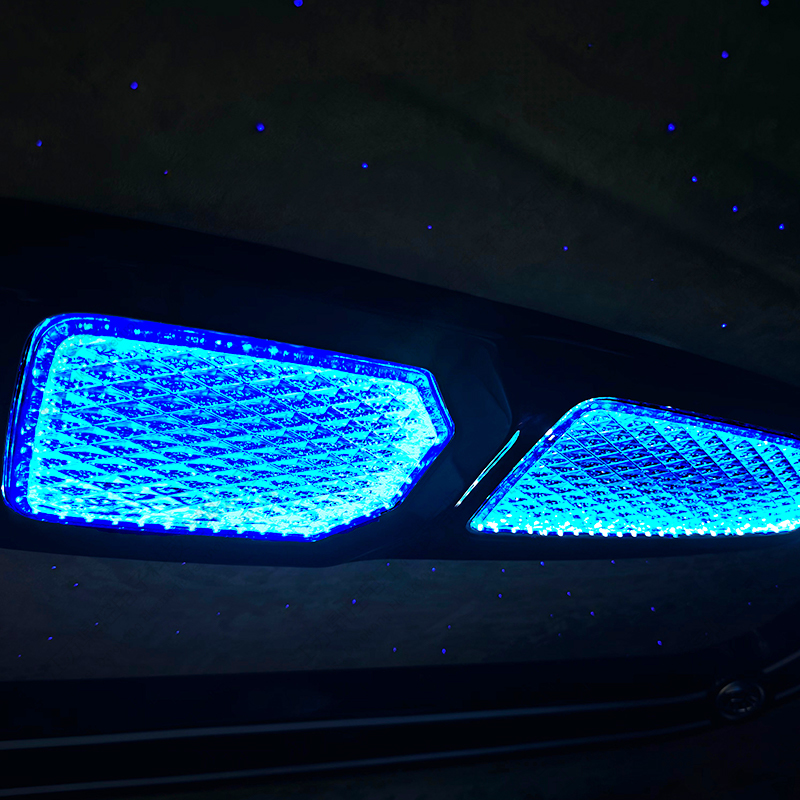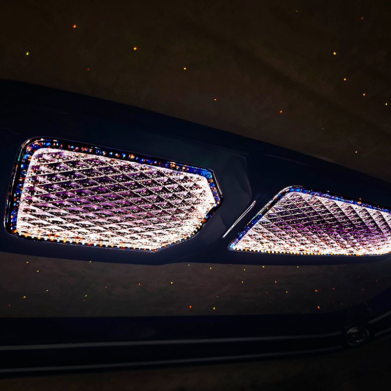 Taklampan integrerar europeiska kristalllinser och ett 3D dubbellagers surroundljus- och skuggsystem, presenterar en mjuk ljushaloeffekt genom 16 lager av diamantskärningsteknologi och stöder tre färgtemperaturer (3000K/4500K/6000K) och 16,8 miljoner färg RGB-scenlägen. Den övre indirekta ljuskällan konturerar takets kontur, den nedre ljusledaren skapar en suspenderad ljuseffekt, och den röststyrda rytmen och stjärnhimmelsläget omdefinierar det mobila affärsvardagsrummet, vilket ger den ultimata stilen för avtalsförhandlingar och familjeresor.